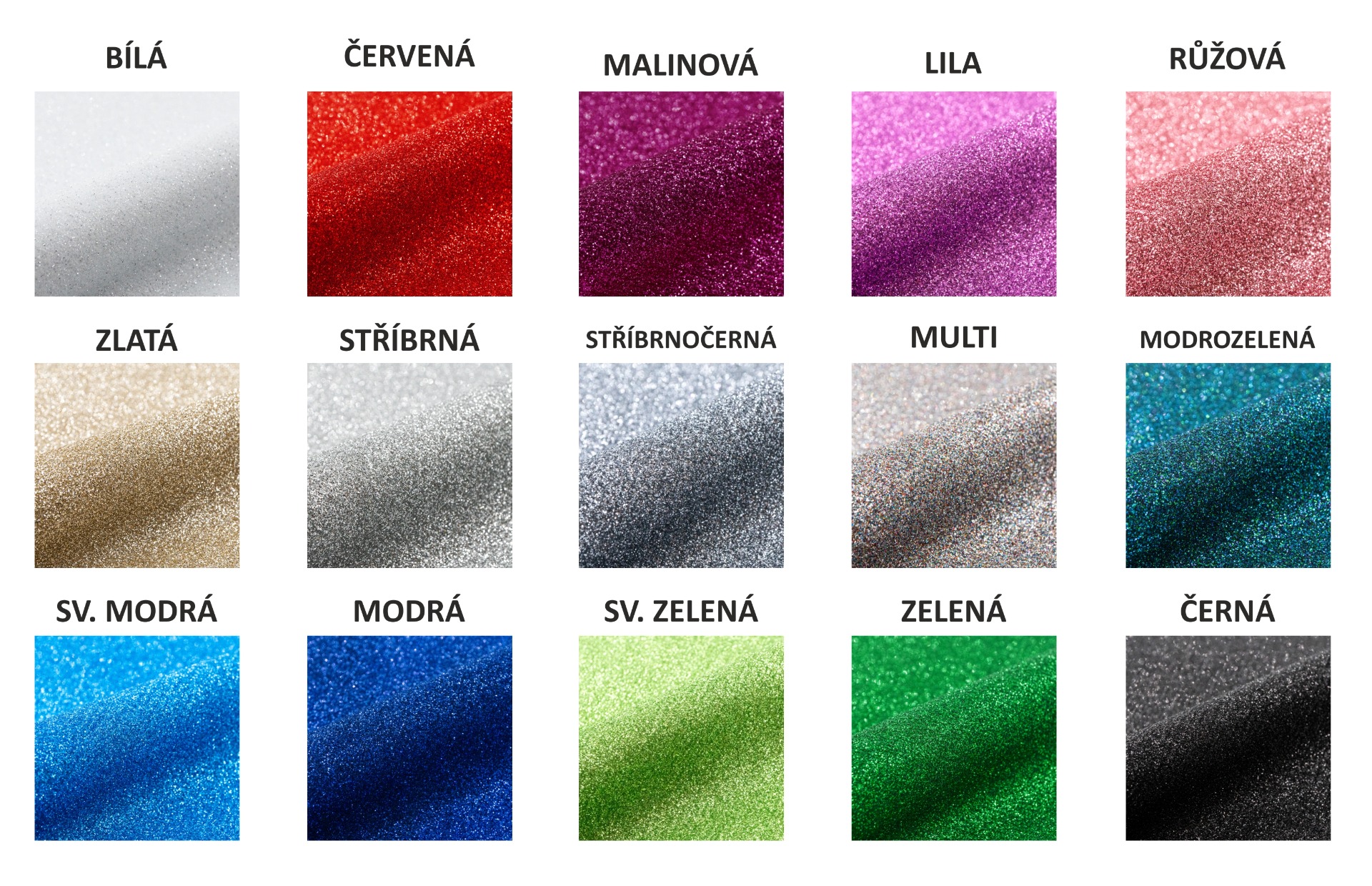 Nažehlovací materiál s výrazným glitrovaným efektem. Je použitelný pro materiály ze 100% bavlny, 100% polyesteru, bavlněných směsí a další syntetické látky. Nevhodný pro nylon a impregnované látky.