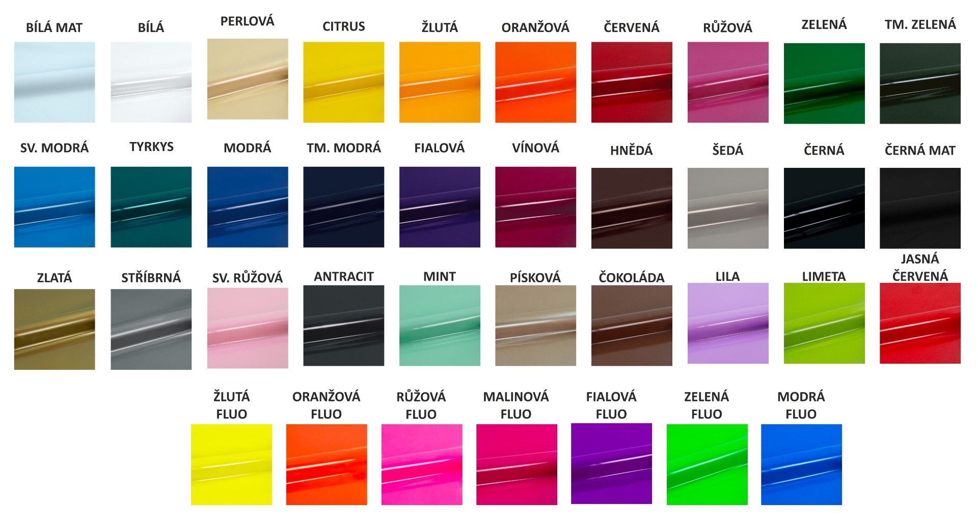 Základní tenká nažehlovací folie v mnoha barvách, vhodná na 100 % bavlnu, 100 % polyester, bavlněné směsi a další syntetické látky.